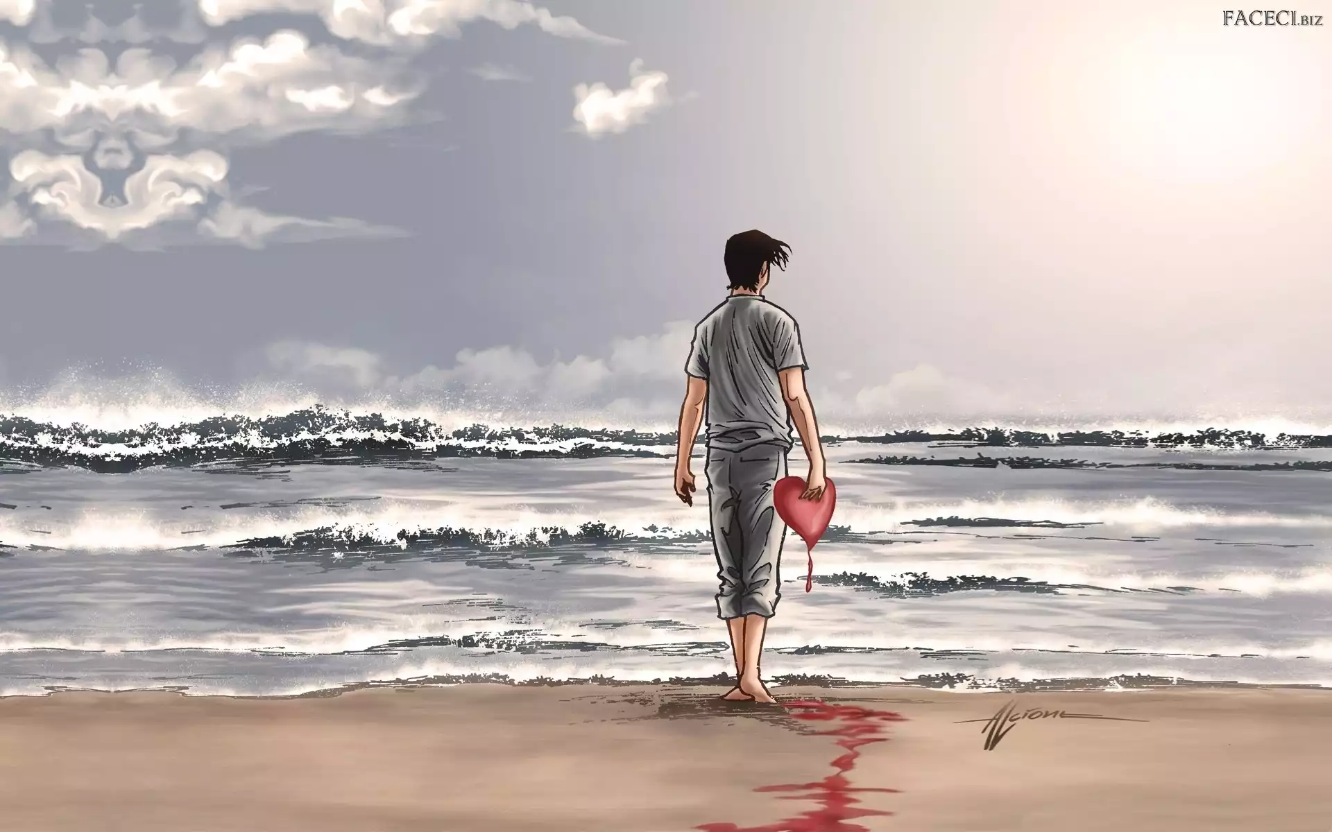 Mężczyzna, Serce, Morze, Krwawiące - faceci.biz